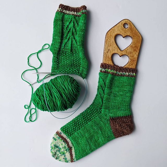 A PDF will be emailed to you by Ravelry. You don’t need to be a Ravelry member to purchase the pattern, but if you are, the PDF will show up in your library. To view the Twinkling Tree Slippers pattern page on Ravelry, click THIS LINK or you can view the sock’s pattern page on Ravelry, click THIS LINK.